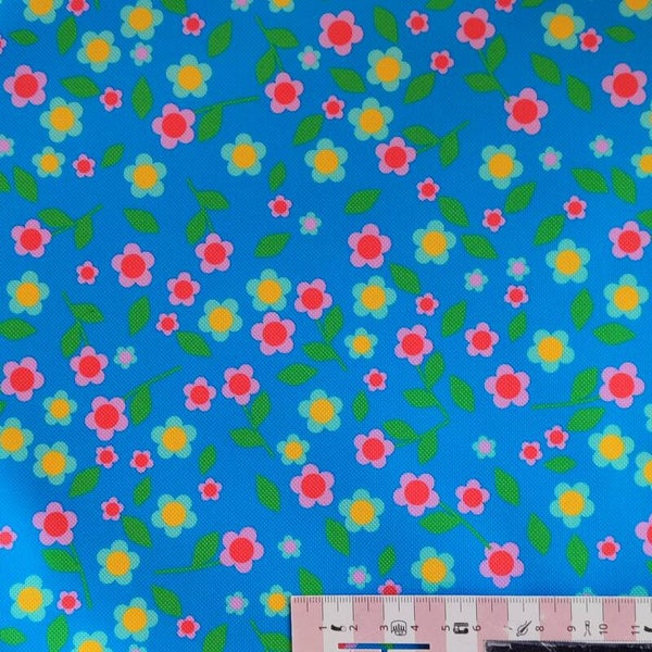 Outdoorstoff Ponys Blümchen blau