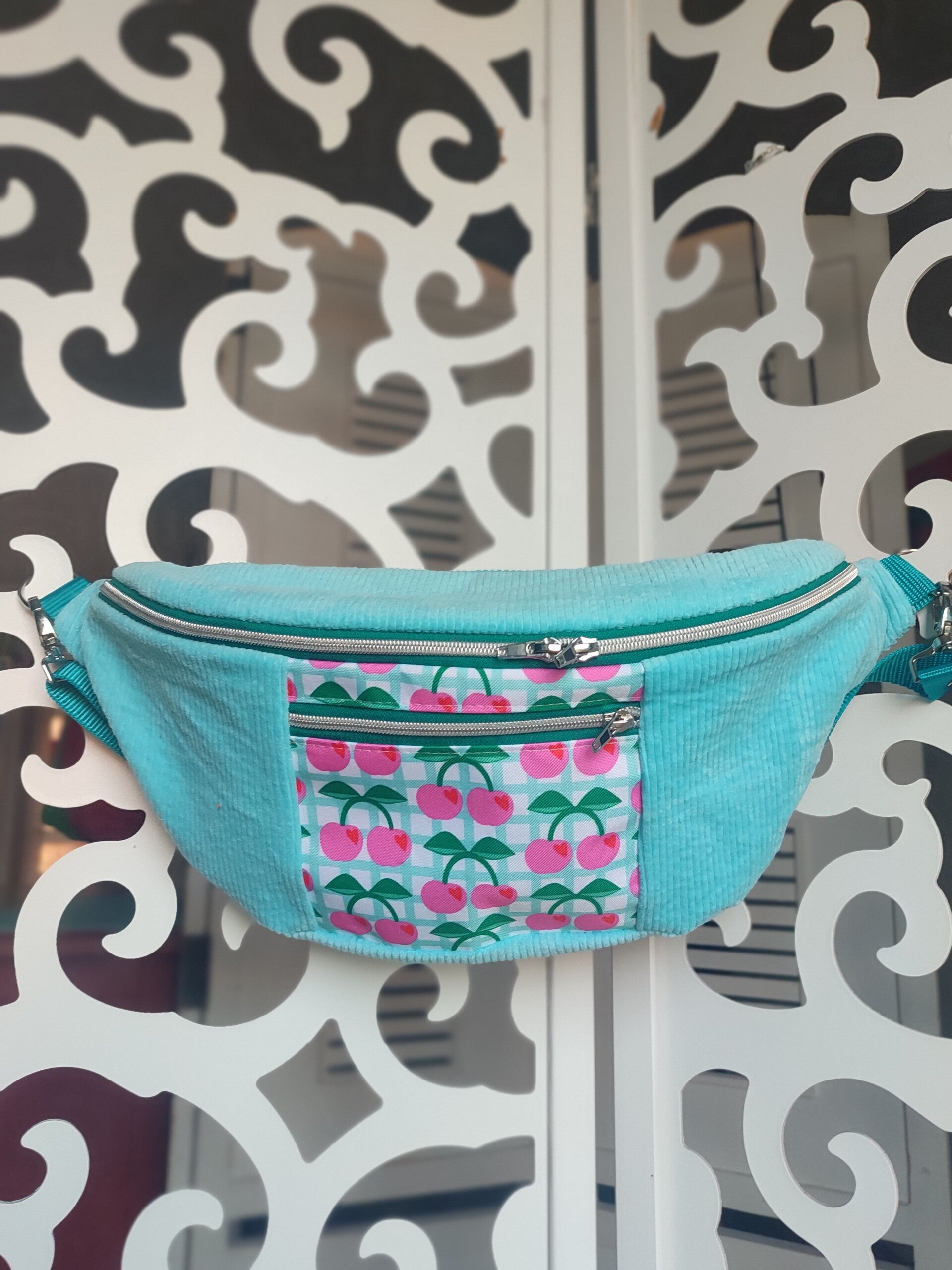 Bauchtasche XL Kirsche blau
